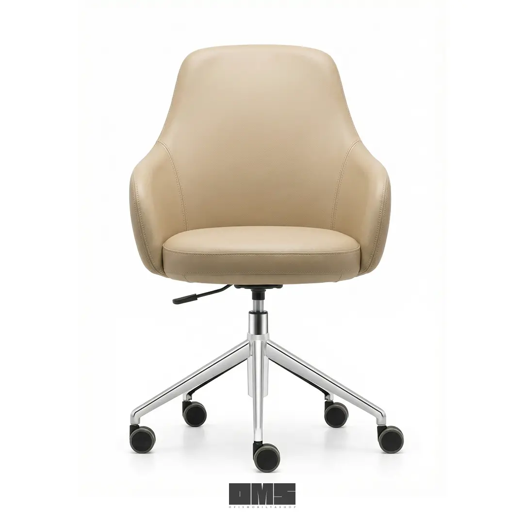 Premium deri dokusu ve altın detaylı ayak yapısıyla Orbit Lite Müdür Koltuğu, konforu prestijle taçlandırır. Ergonomik ve lüks bir oturum sunar.