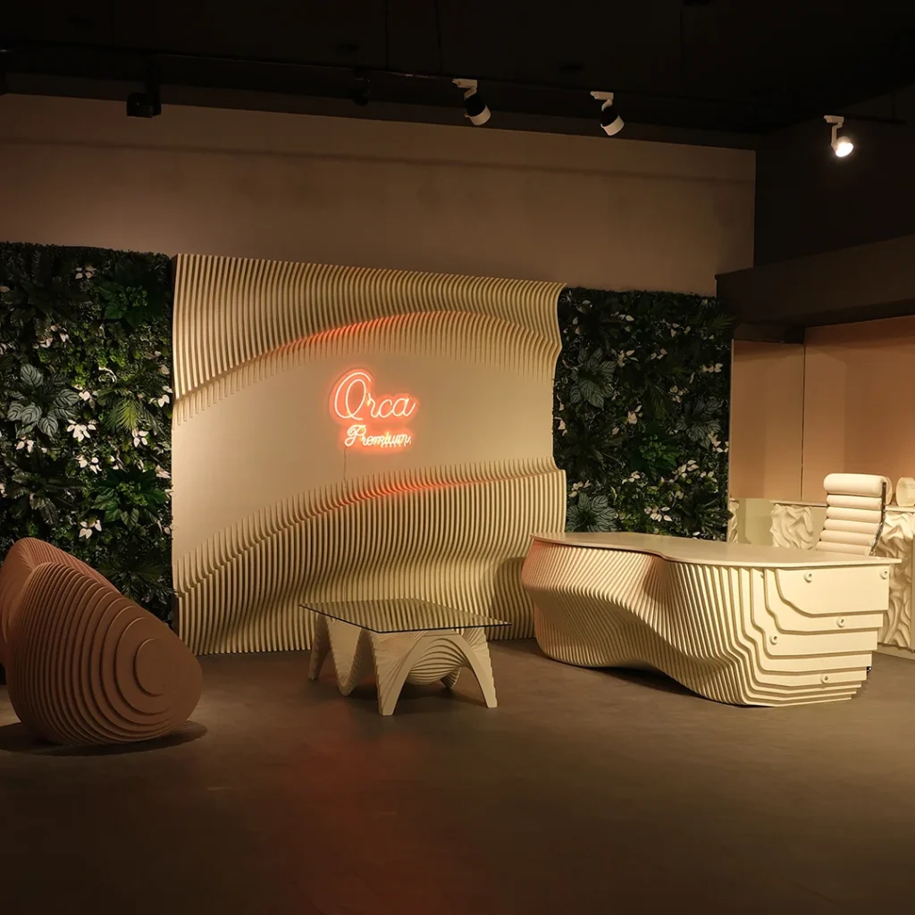 Orca Yönetici Takımı Akıcı hatları, katmanlı formu ve parametrik tasarımıyla güç, estetik ve vizyonu bir araya getirir. Ofisinizde özgün bir atmosfer yaratır.