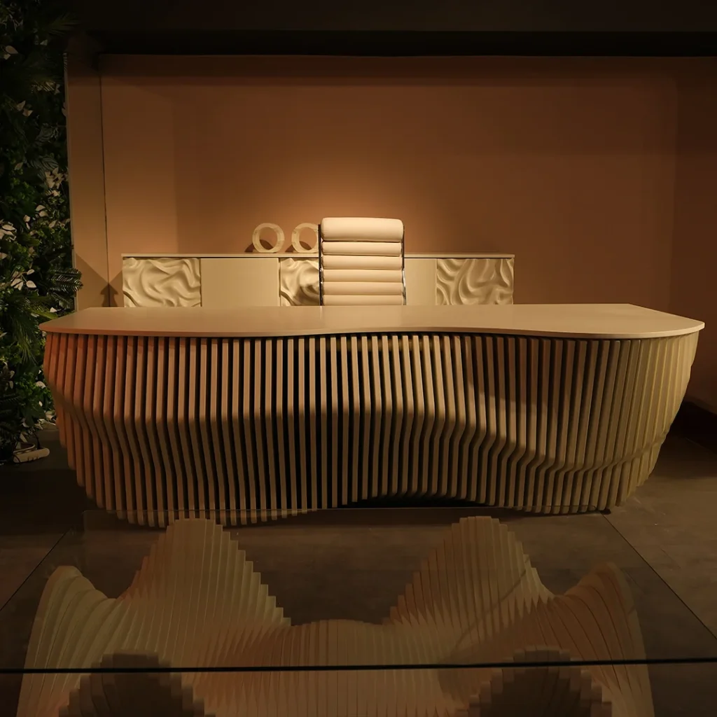 Orca Yönetici Takımı Akıcı hatları, katmanlı formu ve parametrik tasarımıyla güç, estetik ve vizyonu bir araya getirir. Ofisinizde özgün bir atmosfer yaratır.
